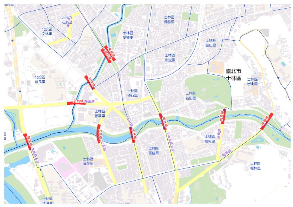 台北市士林區因為有雙溪及磺溪貫穿其間,因此有許多橋樑。其中不少橋樑的名稱與其連接的道路名稱並不一致,形成了有趣的命名現象,也反映出地方歷史、地景變遷與行政區劃演變之間的錯綜關係。像是雨農橋位於雨農路上、文昌橋在文昌路上,橋名與道路名一致;但福林橋卻位於中山北路五段上,並不在福林路上或福林里內;文林橋則在福國路上,而非文林路上或文林里內;石牌橋反而在文林路上,並不在石牌路上或石牌里內。更有趣的是,文林路上還有另一座橋,名為士林橋。這些錯位的橋樑命名,呈現出士林區複雜的歷史脈絡與都市發展過程,也反映地方居民記憶與行政命名之間的互動與延續。
