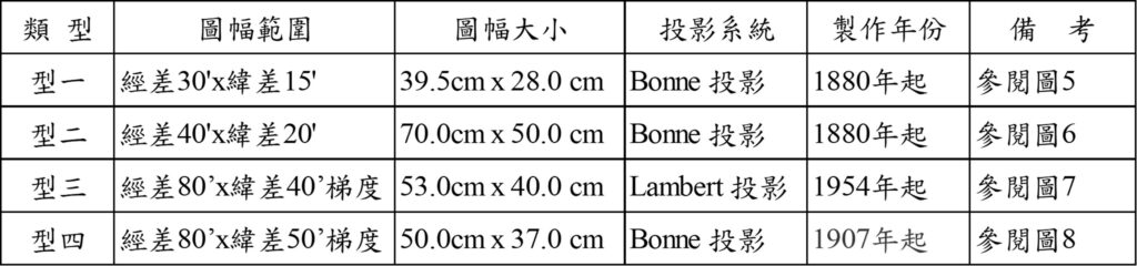 表2.法國內政部版各式十萬分一歷史地圖之彙整表