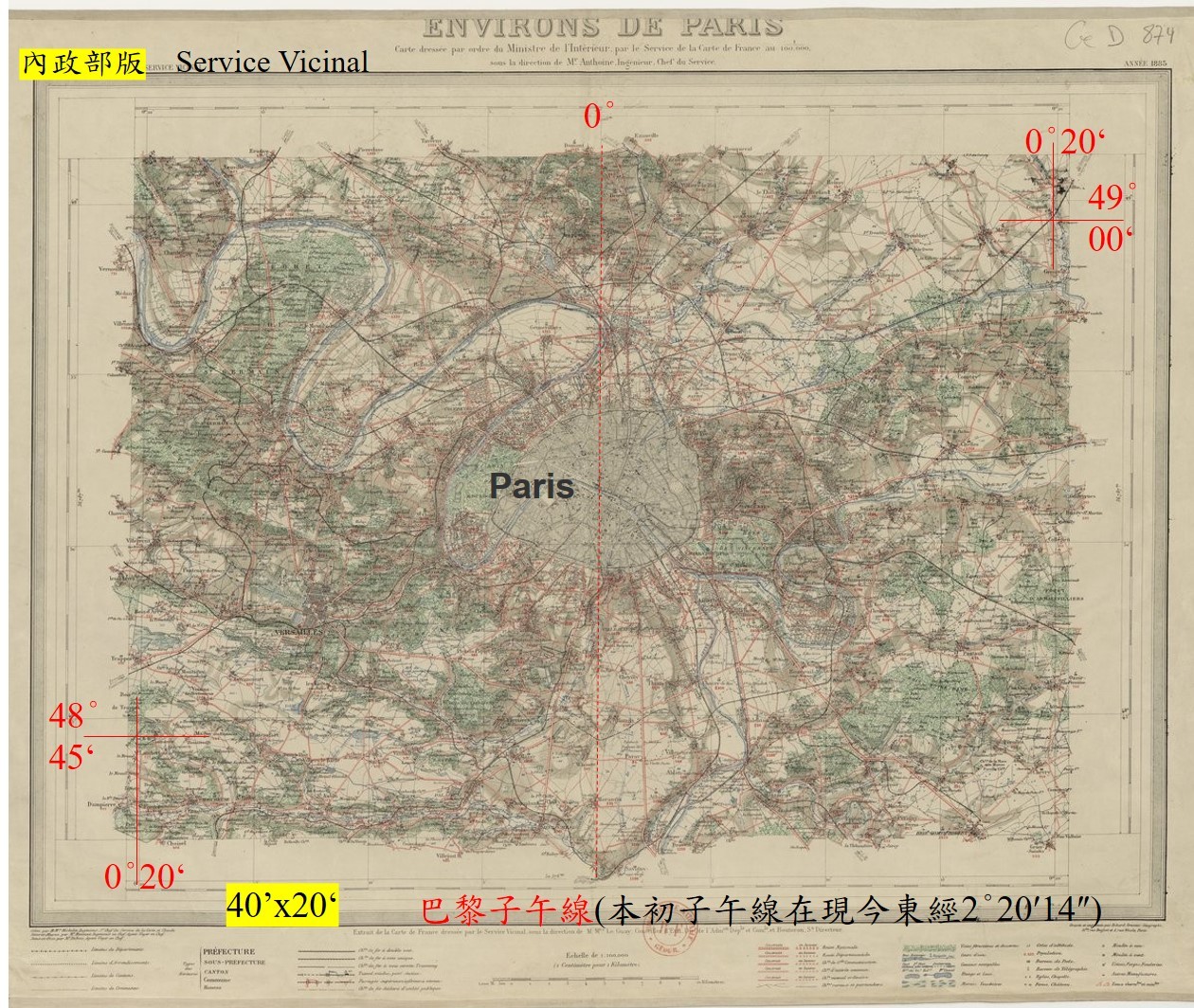 圖6.型二[40’x20′] 格式_Environs de Paris(1885)*4  70.0cm x 50.0cm