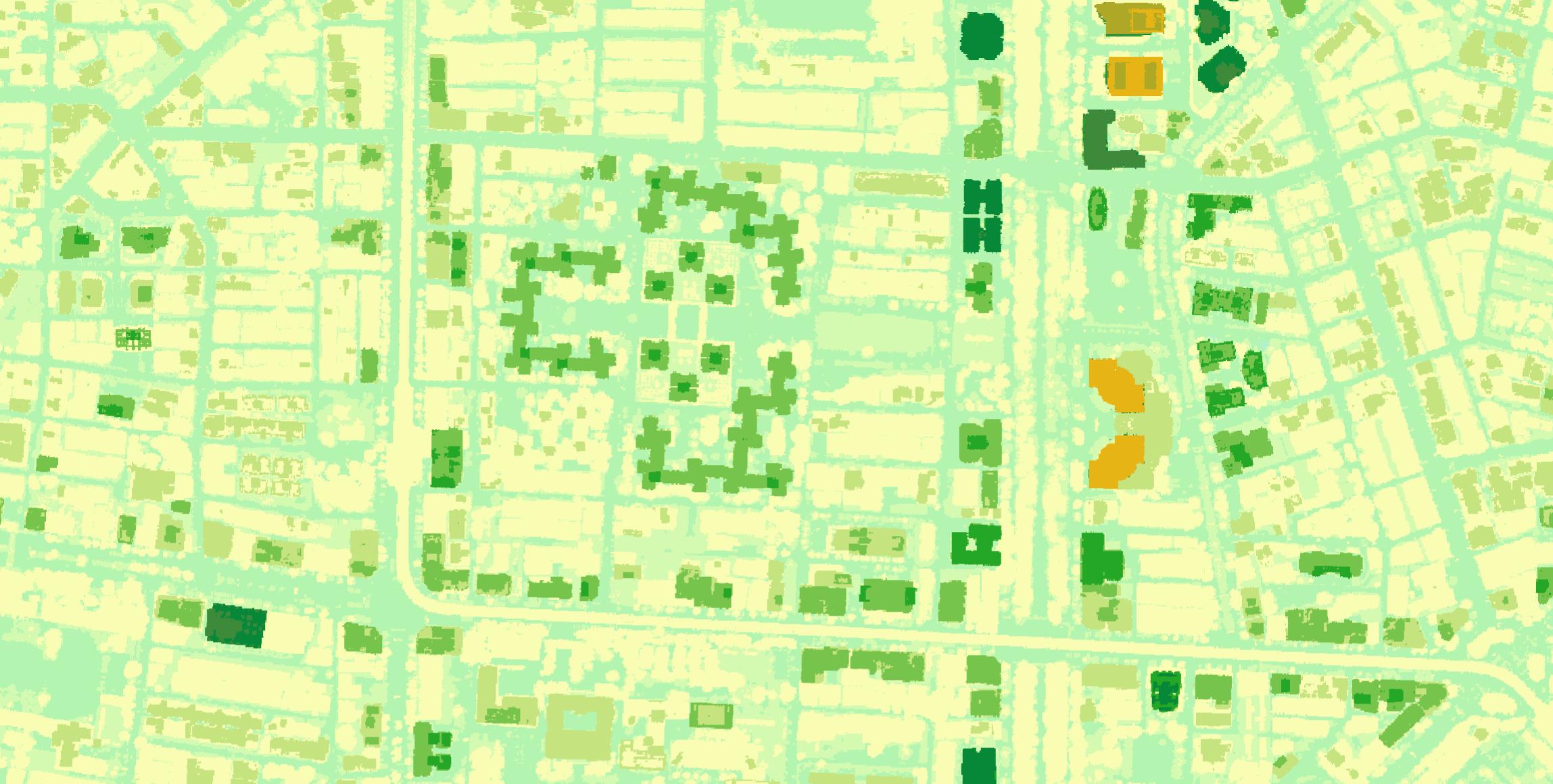 位於臺北市大安區的「成功國宅」,坐落於復興南路二段、和平東路三段與敦化南路二段所圍繞的街廓內,建築群並未直接臨接主要幹道;中央區建築樓高約為 15、17 與 19 層,從 DSM 影像觀察可見,其高度明顯高於同一街廓內的其他建築,呈現出突出的量體特徵,與臺北市多數新興發展區常見的「外圍臨路高、內部低」街廓型態形成鮮明對比。若進一步從航照影像判讀,其整體邊界輪廓亦顯得不甚規則,彷彿被一圈彎曲、近似弧形的空間形態所環繞,具有相當高的辨識度。