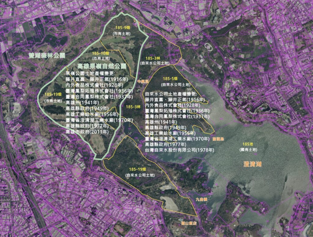 高雄市政府工務局近年規劃串連澄清湖大公園、雙湖森林公園及鳳山熱帶園藝試驗分所等綠地空間,形塑城市中的連續綠地系統。值得注意的是,該規劃範圍與1910年藤井直喜、藤井正氣向臺灣總督府申請開墾之山林地高度重疊,顯示土地利用雖歷經多次轉變,其地理空間仍具有百年延續性。