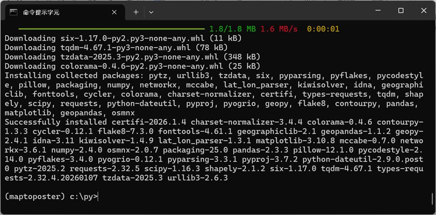 以下為 MapToPoster 工具的安裝及操作步驟(如果你的電腦已經有安裝好Python環境,可以從步驟2開始):